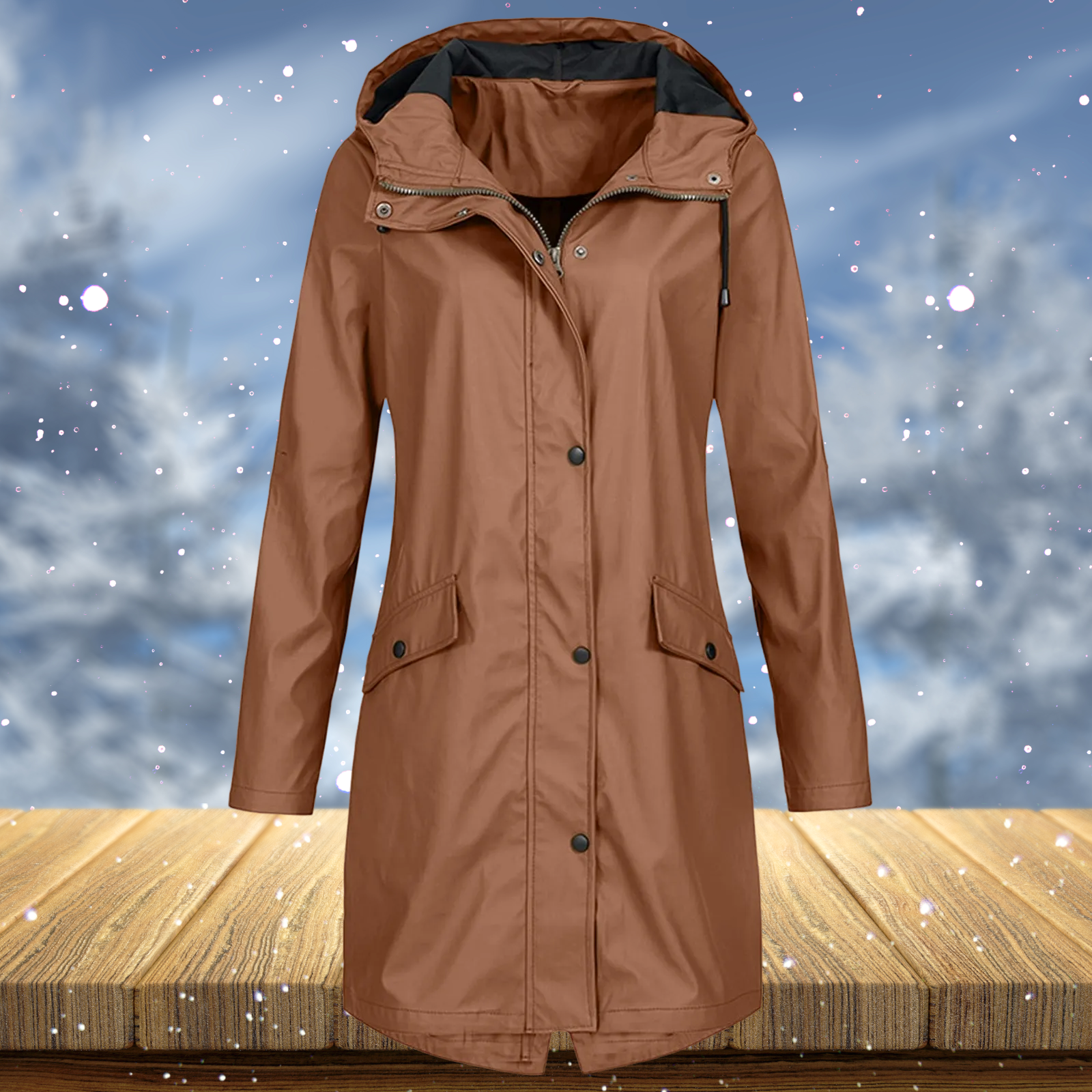 Zenith tuulenpitävän pitkän sadetakin kanssa, jossa toiminnallisuus kohtaa modernin eleganssin, voit kohdata vaihtelevat sääolosuhteet tyylikkäästi ja turvallisesti.
